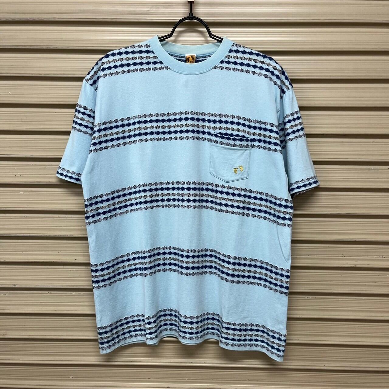 80s Hang ten ハンテン ボーダー Tシャツ 半袖 胸ポケット 刺繍 サーフ系 L 古着 古着屋 埼玉 ストリート オンライン 通販 アメカジ ビンテージ 2403202